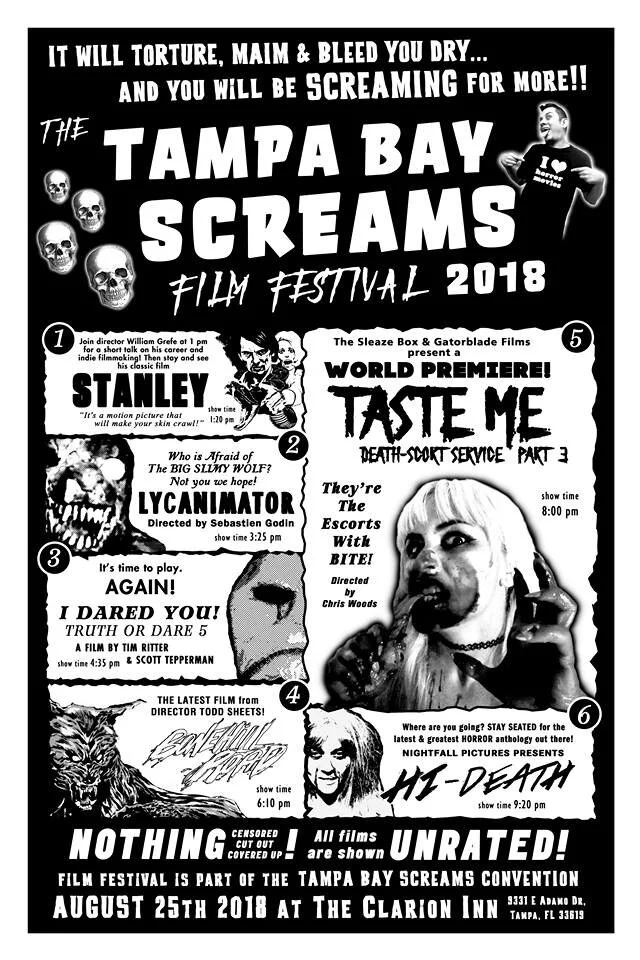 D.I.Why? is proud to announce that Hi-Death will be screening at the Tampa Bay Screams Film Festival August 25th 2018 at 9:20 pm! This looks like it's going be a great festival.. so proud to be in such awesome company!
